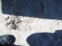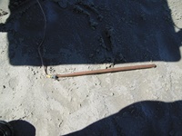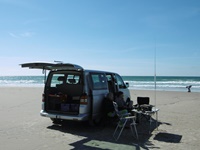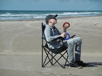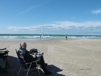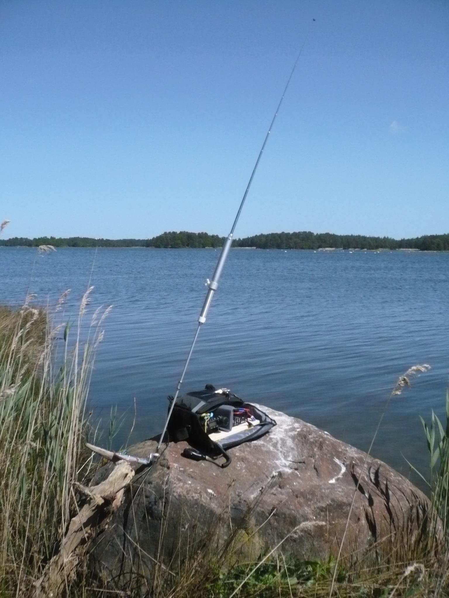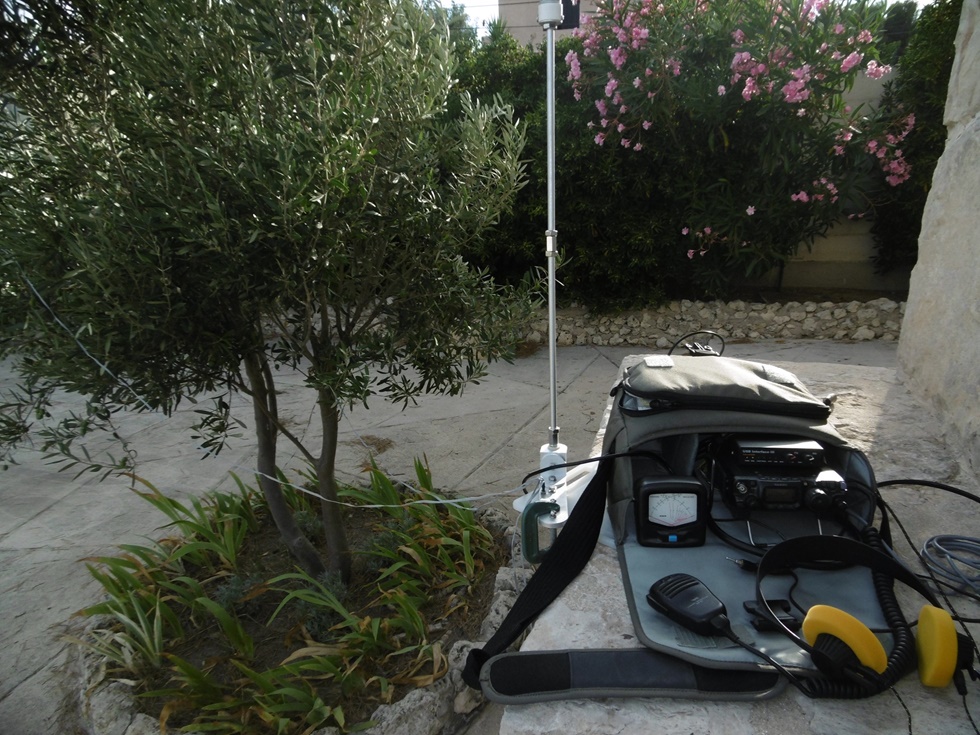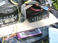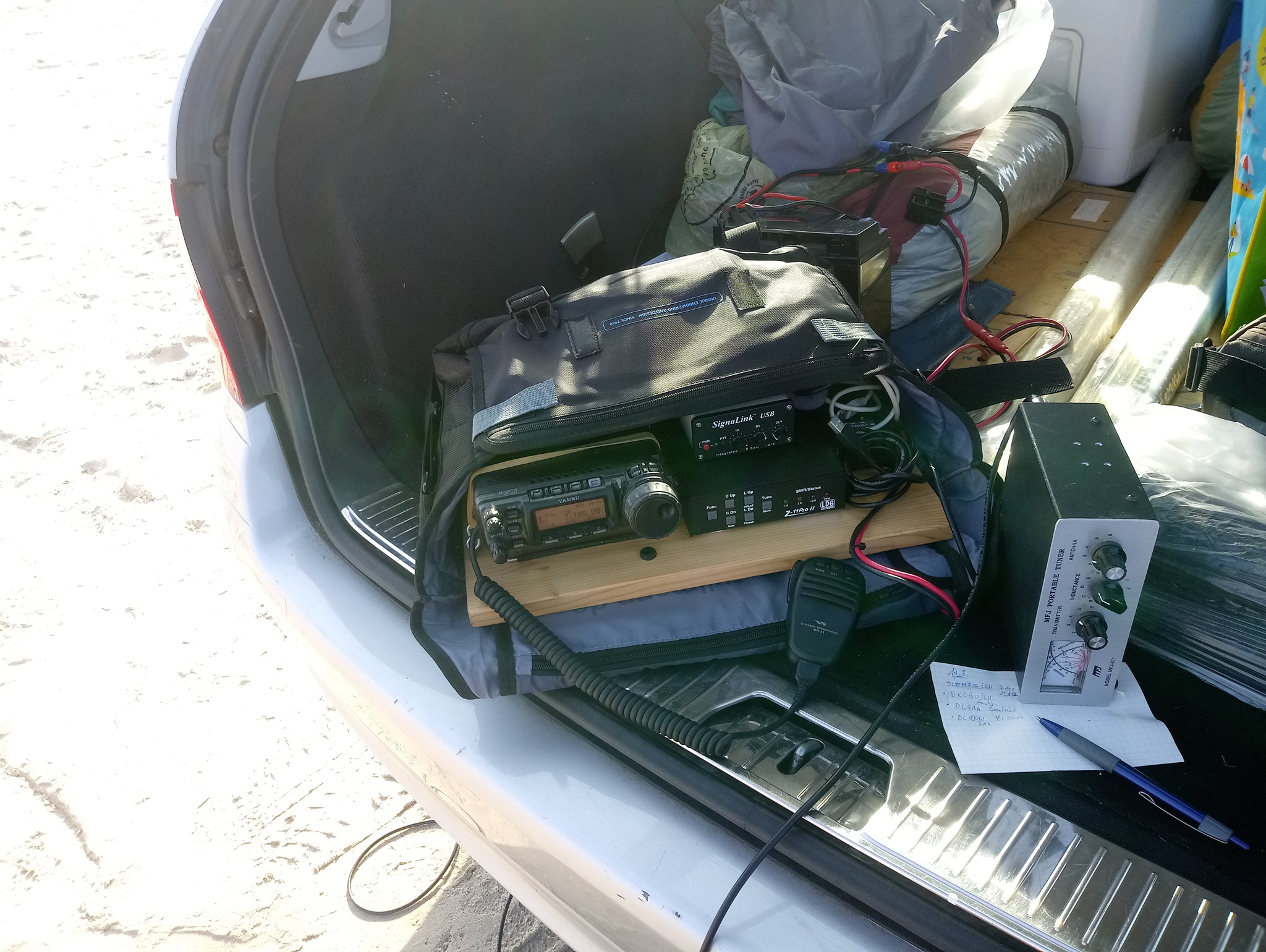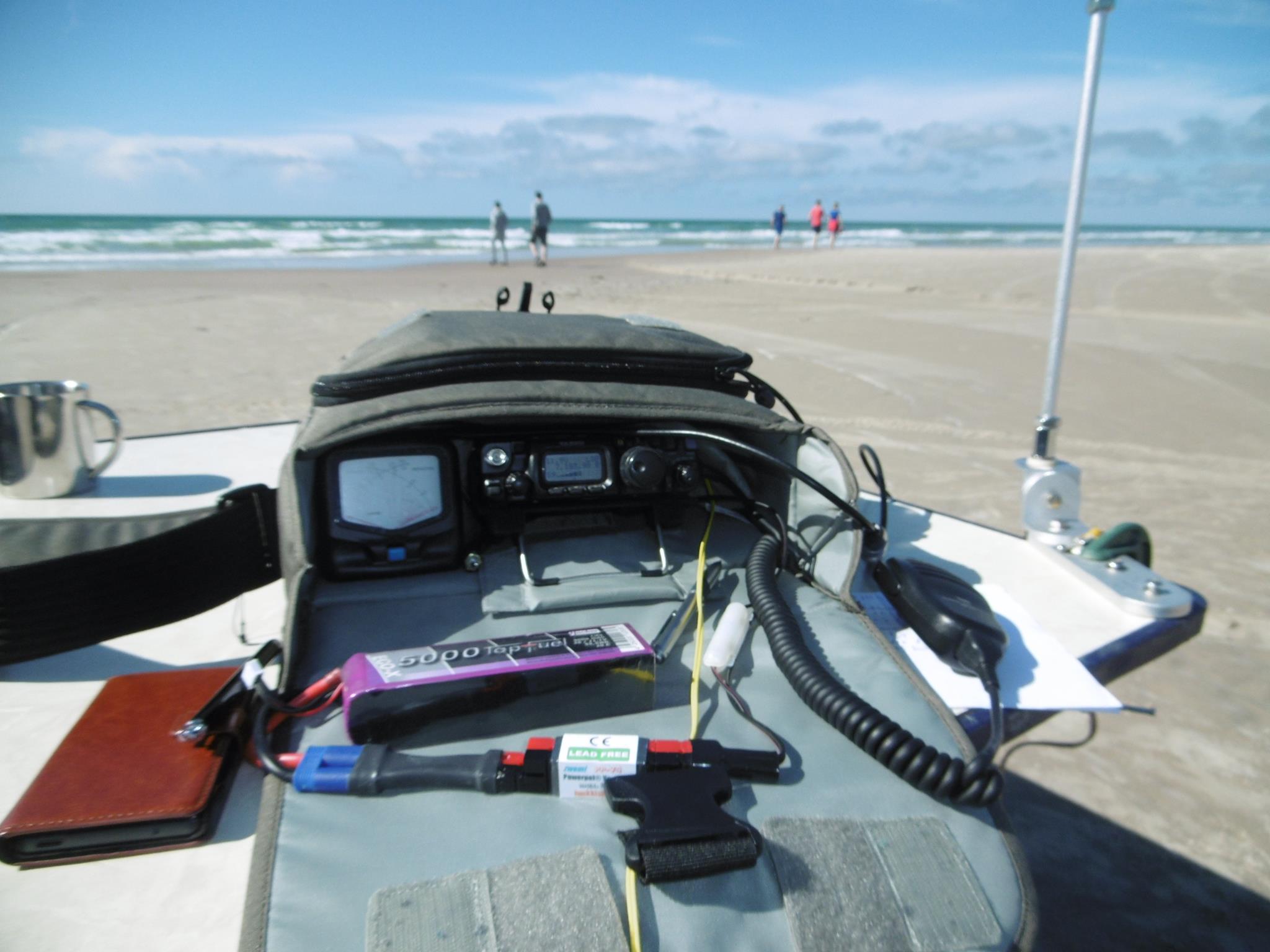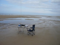 An diesem Standort sind mir Verbindungen nach Deutschland mit 0,5W Output in Phonie gelungen. DJ3FS, Dieter, hat mir 54 gegeben. Erdung mit Kupferrohr im salzwasser-feuchten Strandsand - super! Speisung der Station mit 5AH-Lithium-Polymer-Akku aus dem Modellbau/Elektroflug (3 Zellen, Normspannung 11,1V, Schnelladefähigkeit in 20 Minuten an der Autobatterie, hochstromfest, Gewicht 250g)
