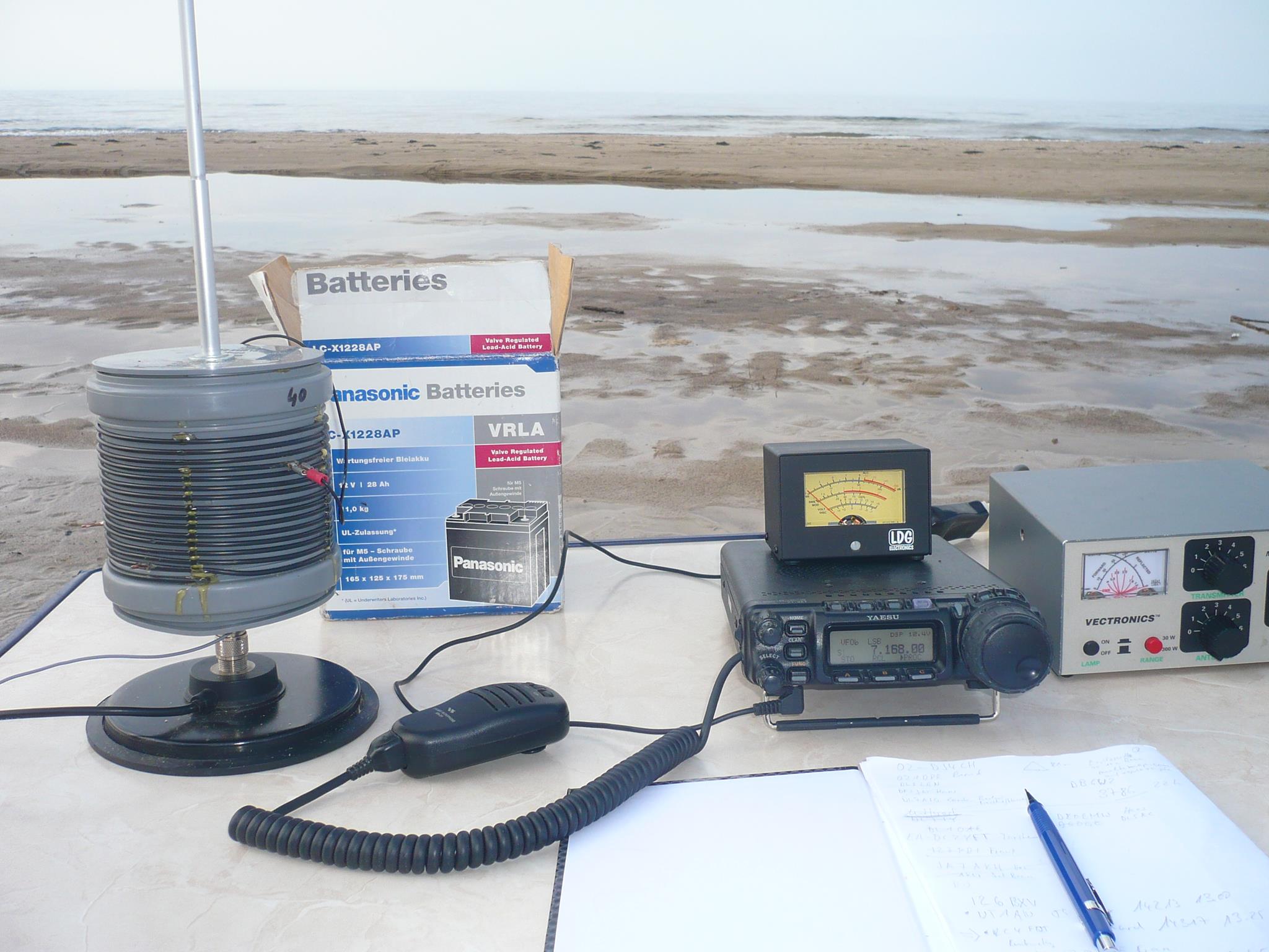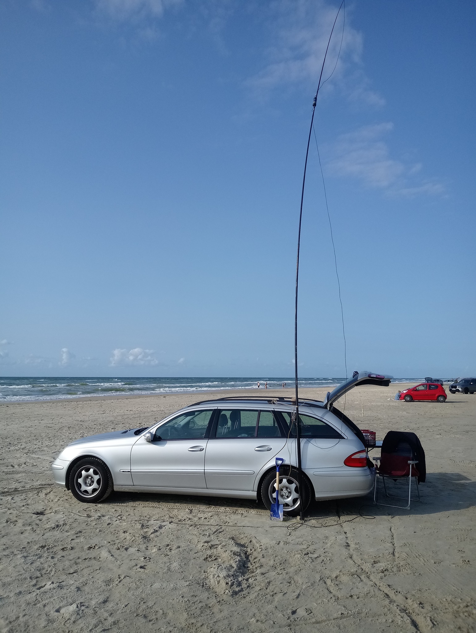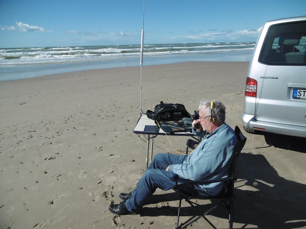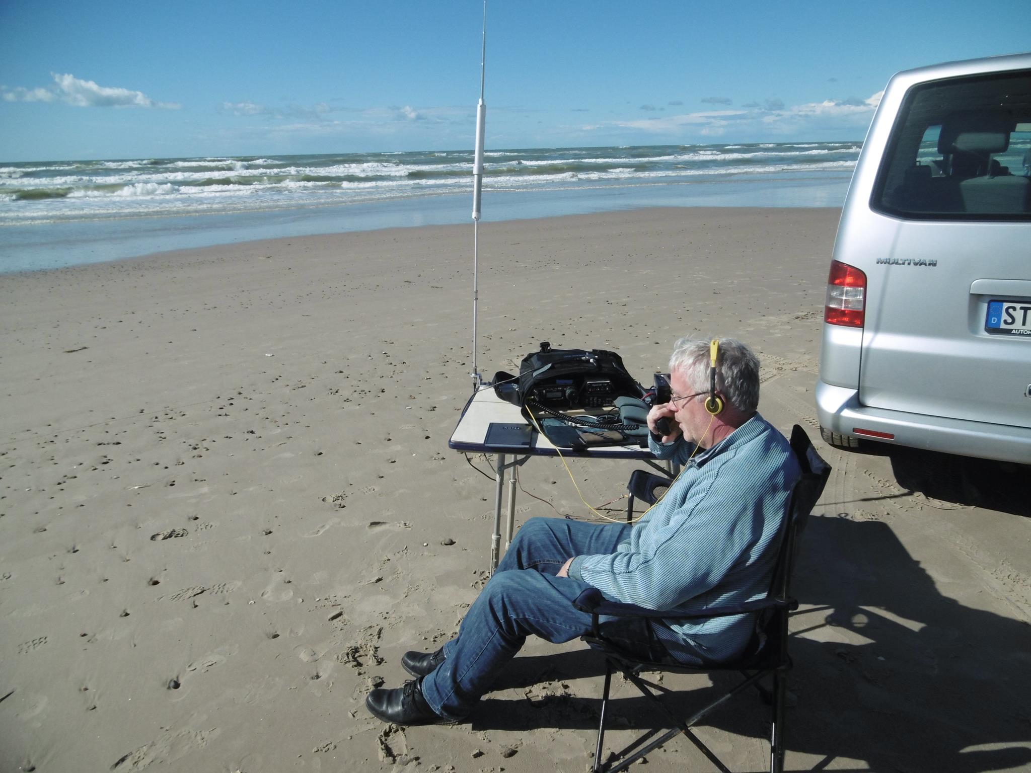 Das Funken direkt an der Wasserkante macht immer wieder riesig Spass: Keine Störungen und beste HF-technische Voraussetzungen. Die Erdung im salzwasserfeuchten Sand ist optimal!
