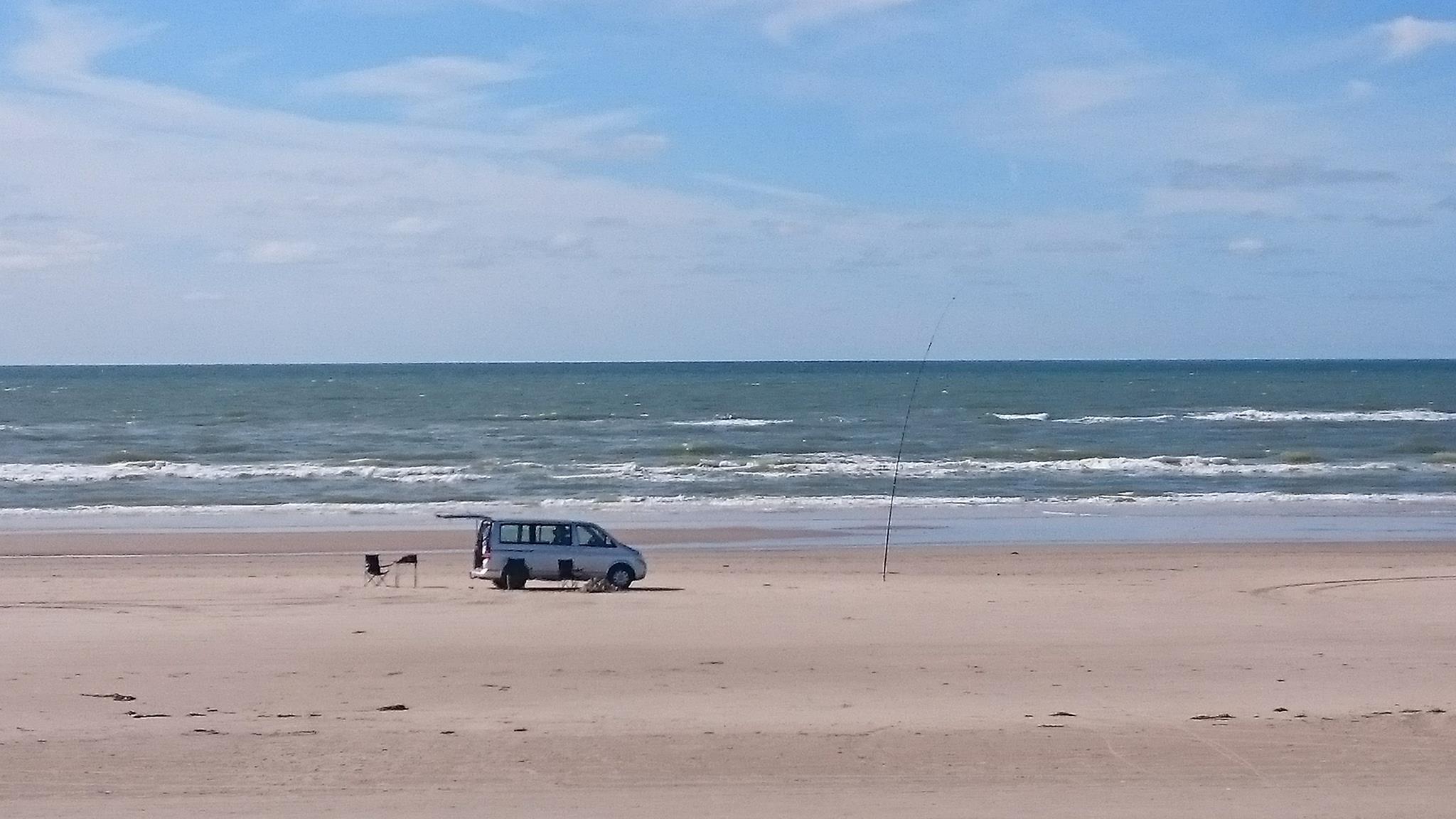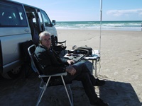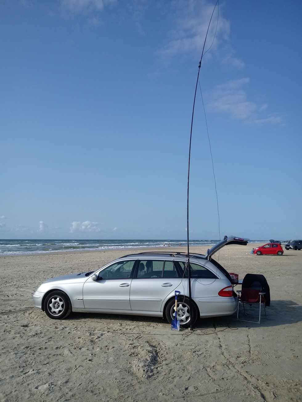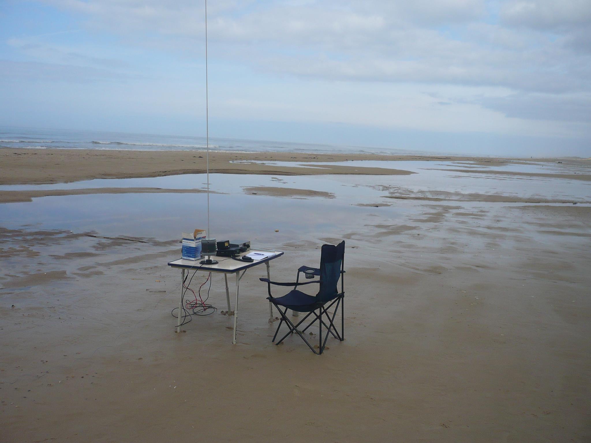 Das Funken direkt an der Wasserkante macht immer wieder riesig Spass: Keine Störungen und beste HF-technische Voraussetzungen. Die Erdung im salzwasserfeuchten Sand ist optimal!
