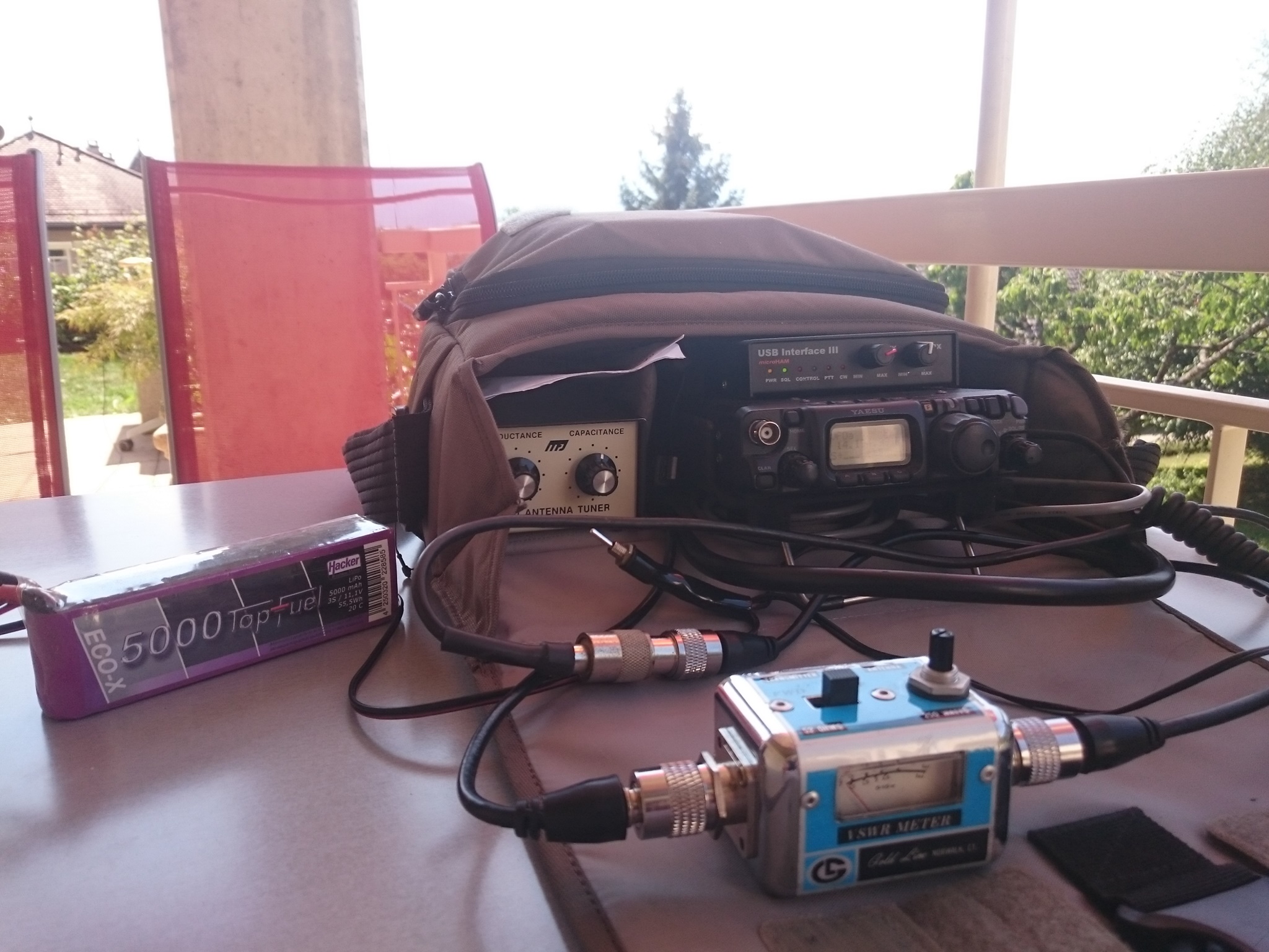 Station: Yaesu FT857, 100W, Homebrew Portabelantenne