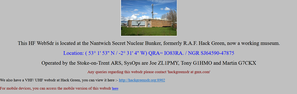 Auch ein sehr gutes WEB-SDR in England Hack Green: Sehr gute Antenne in absolut störungsfreier Umgebung